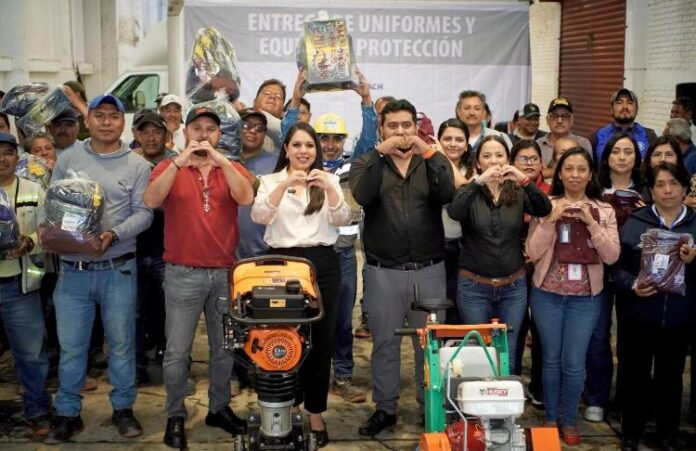 La presidenta municipal de San Pedro Cholula, Tonantzin Fernández Díaz, entregó uniformes, equipo de protección y herramienta al personas del Sistema Operador de los Servicios de Agua Potable y Alcantarillado del Municipio (Sosapach).