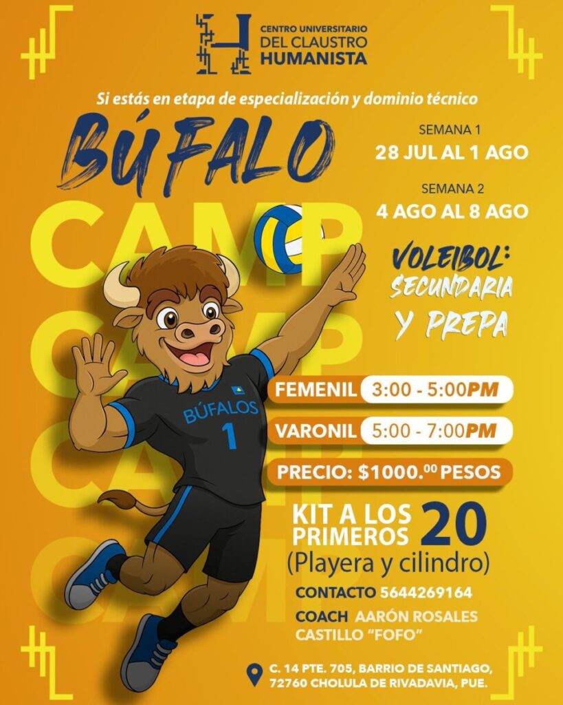 San Pedro Cholula, Puebla, a 10 de julio de 2025. – El Colegio Humanista invita a niños y jóvenes a participar en el Búfalo Camp, su curso de verano de voleibol, diseñado para perfeccionar técnica, fortalecer disciplina y potenciar el talento deportivo en un ambiente de formación integral.