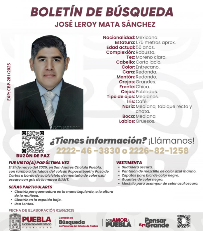 REDACCIÓN La presidenta municipal de San Pedro Cholula, Tonantzin Fernández Díaz reveló que continúa la búsqueda del ciclista desaparecido, José Leroy Mata Sánchez, el pasado 31 de mayo en el Cerro Zapotecas.Recordó que desde que recibió el reporte de que se perdió un ciclista de 50 años de edad, dio la instrucción a la Secretaría […]